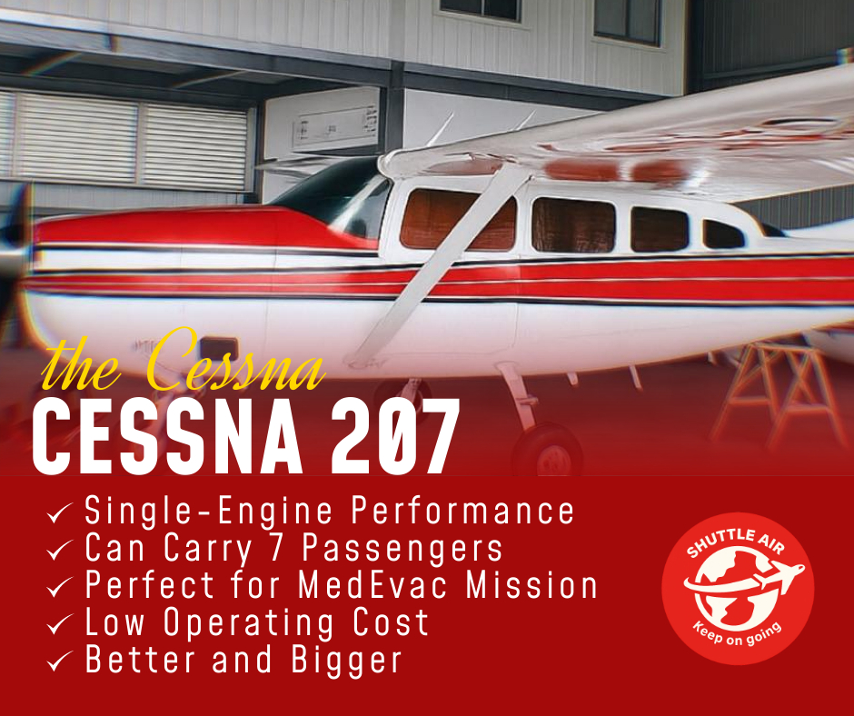 The Cessna 182 Skylane is a reliable and versatile aircraft, perfect for short-haul charters, air taxi services, and medevac missions. Known for its efficiency, speed, and ability to operate from smaller airstrips, it ensures a smooth and safe journey to even the most remote destinations.